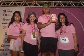 Todos os participantes receberam um lindo kit de participação composto por sacola de costas, camisa rosa personalizada do tipo “dryfit” 100% poliamida, número de peito e chip de cronometragem, lanche e hidratação e medalha finisher com o laço rosa, símbolo do movimento mundial Outubro Rosa. E os 500 corredores percorreram as distâncias de 2,5 km, de 5 km ou de 10 km rigorosamente medidas na Avenida Oceânica